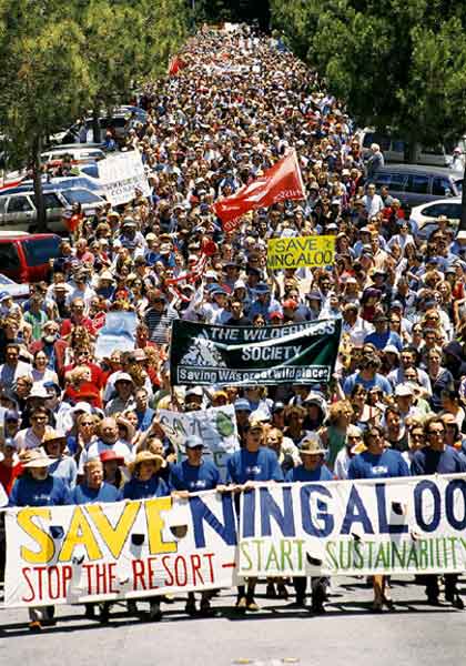 The Ningaloo is a coral reef and limestone cape of astonishing biodiversity on the west coast of Australia. The SAVE NINGALOO CAMPAIGN is the focus of community conservation efforts to protect this special place. With the support of tens of thousands of people from around the world the campaign stopped a large marina resort from being built in 2003. The Campaign now strives to see these ecological values maintained while allowing for sustainable levels of human visitation to the region |